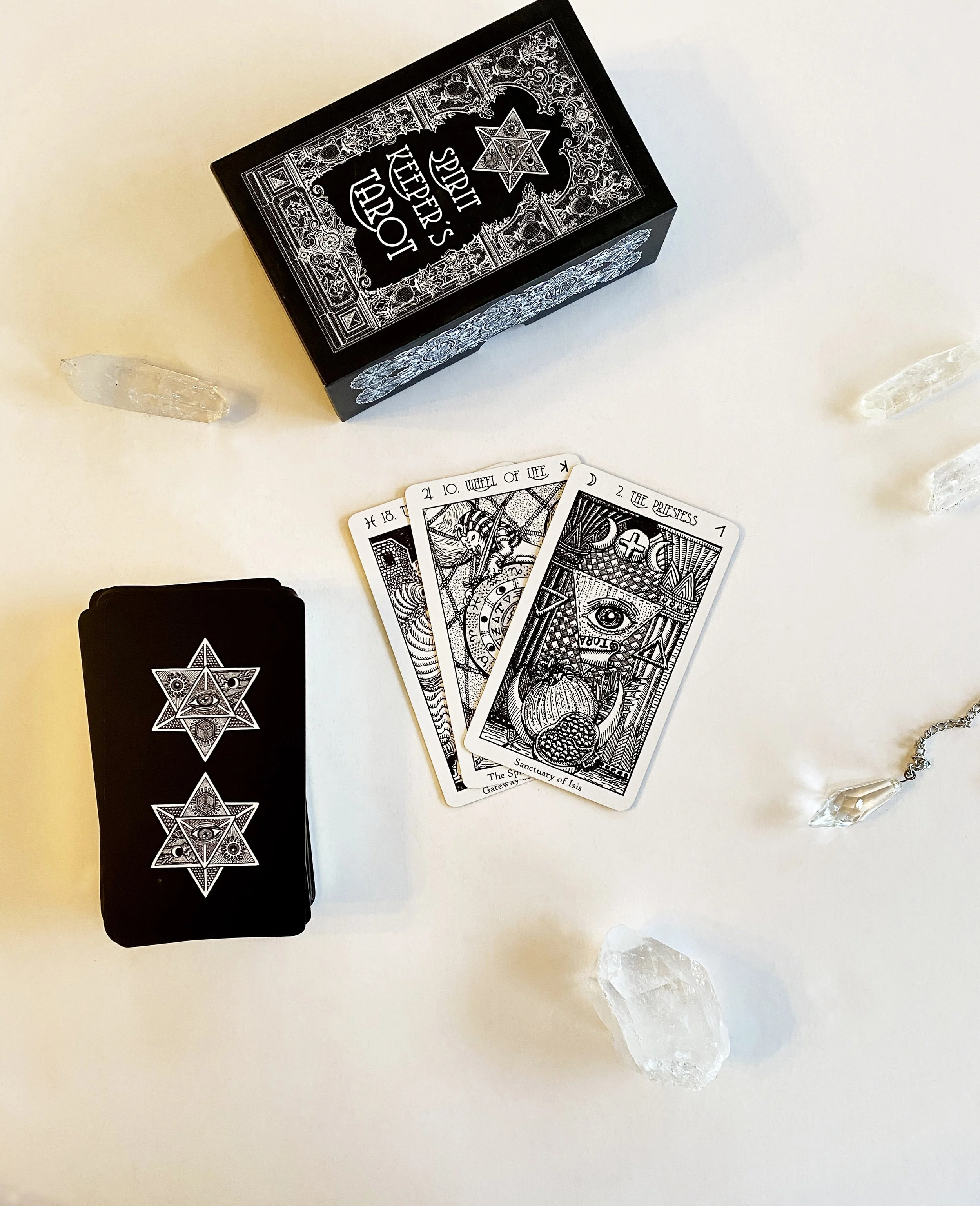 The Bianco Nero by Marco Proietto draws from the classic Visconti deck and the Rider Waite Smith deck. All three decks read quite differently, based on the unique voice of the artwork in each deck.